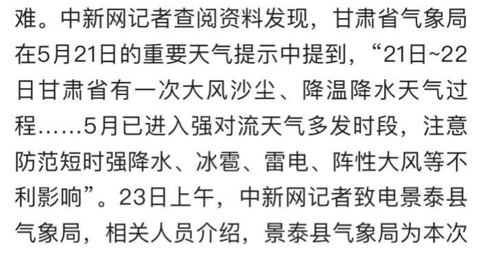 然而中新網的記者查閲了相關資料發現,甘肅省氣象局其實已經提醒過21-22日可能會有降温降水。