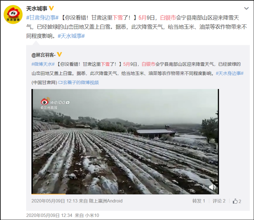 都在説這次悲劇的原因是“超極端天氣,五月下雪”,但如果我們追溯往年的天氣情況,就會發現白銀市在5月份下雪也沒那麼罕見。