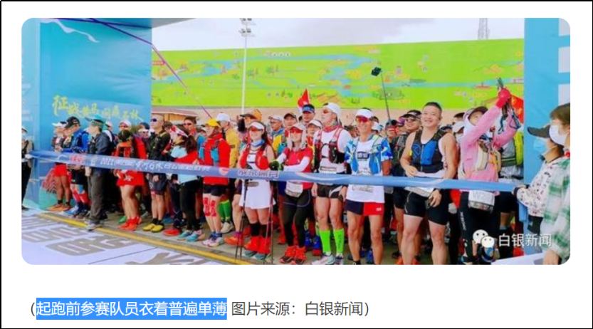 很顯然,從組委會不強制運動員帶衝鋒衣這點來看,他們應該是完全沒有做氣温驟降的預案,乃至於我們回看賽事出發的信息,會發現很多參賽選手短褲短衣,隨身裝備不多,面對降温手足無措。
