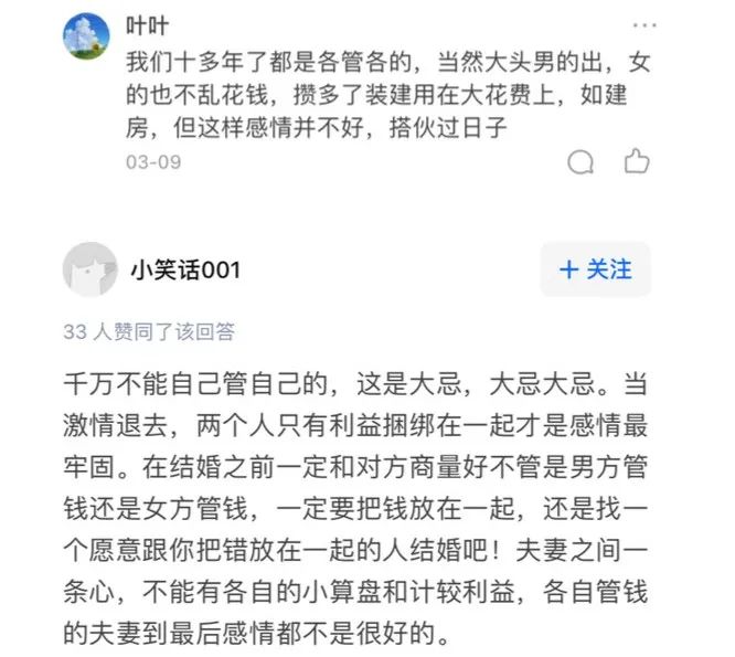 “組團是為了一起打怪,這麼排斥利益共同體,還結婚幹啥呢?”這位朋友説。