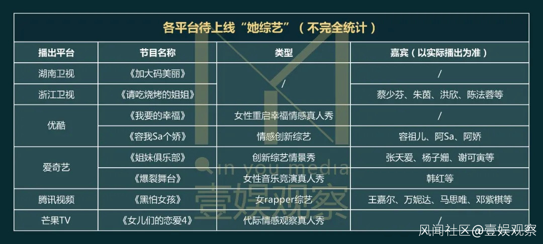 不可否認,“她綜藝”是過去五個月綜藝市場的“主力”之一。