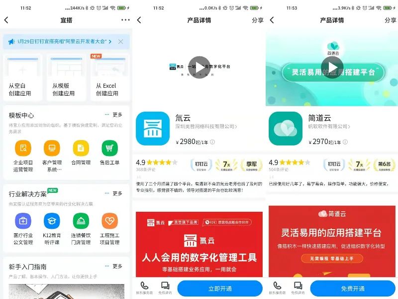 在釘釘上,有不少低代碼開發工具,如宜搭、簡道雲、氚(chuān)雲,周勳憑個人喜好選擇了氚雲。