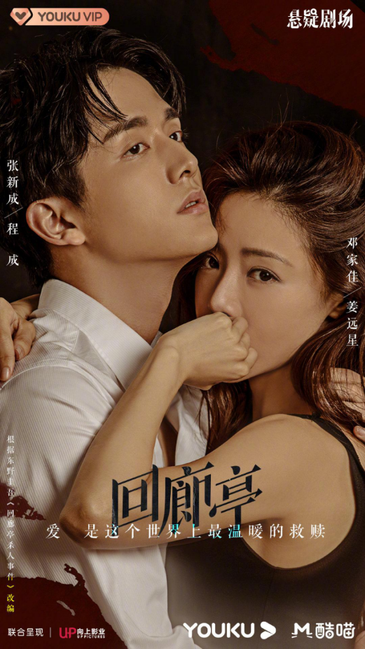 《迴廊亭》是張新成、鄧家佳主演,優酷和向上影業聯合出品的懸疑推理網劇,改編自東野圭吾推理小説《迴廊亭殺人事件》,講述了深夜迴廊亭突然大火,一名男子葬身火海,姜遠星嚴重燒傷毀容;陽光帥氣的程成出現於遠星的生命中,兩人的命運似乎也被這場大火改變的故事。