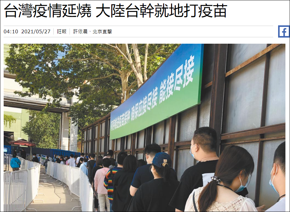 中時新聞網:台灣疫情延燒,大陸台幹就地打疫苗