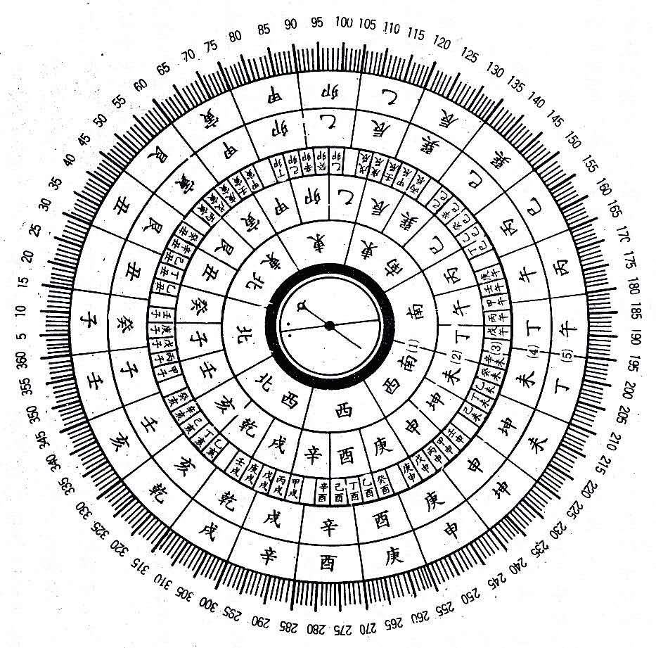 3.中國講究天人合一,天地變化又對人產生影響。形成了傳統的堪輿學,也就是風水學。天文地理人事合一,體現在風水羅盤中。研究發現,晚唐唐僖宗國師,道家楊筠松,把365取整數,就是360度,體現在羅盤上。(圖)自此,圓周360度,正式成為一種成型的應用方式問世。風水羅盤中誕生了這麼一個偉大的數字,也算是歪打正着。