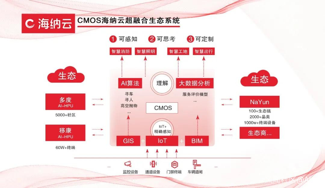 對應到智慧社區的現實應用中,包括海納雲在內的頭部企業大多推出了AIoT平台,不再是硬件的簡單疊加,更像是一個有機生命體,擁有數據採集、數據傳輸、數據分析處理、數據應用的生態能力,並且對軟硬件的統籌給出了新的思路。