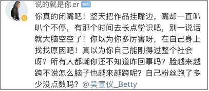 值得一提的是,昨日(27日),吳宣儀還發布了一條微博,表示“這個圈子女孩不被善待”。