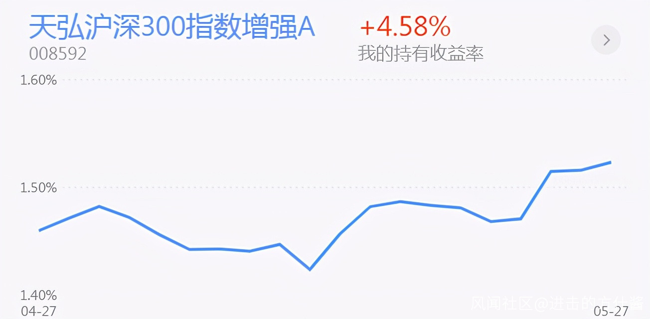 如果是震盪市,反彈目標不明確,我認為參與天弘滬深300ETF聯接C問題不大,不過如果知道反彈目標在哪裏,其實可以把風險偏好增加一點,就像看到氣象預報後進行相應準備一樣,其實還有一種叫指數增強的基金。指數增強,實際上就是在原有跟蹤指數的基金上,加入一些修正因子(例如貝塔值),讓基金本身能更好的跑贏指數進而出現上漲。我們還是用天弘的作舉例吧,指數增強基金叫:天弘滬深300指數增強A ,與天弘滬深300ETF聯接A作一個橫向對比: