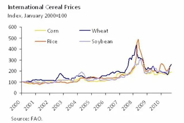 2008年,發生了世界性的糧食危機,只不過當時的金融危機蓋過了糧食危機的風頭,大家沒什麼印象。