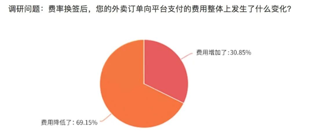 據《餐企老闆內參》對試點區域的餐飲商户的調查,近500份有效結果顯示,在參與調研商家中,客單價在50元以下,配送距離在4公里以內的外賣商家,佔絕對主體。有65%的商户對費率調整有明確感知,其中近7成商户認為向平台支付的費用較之前降低了。