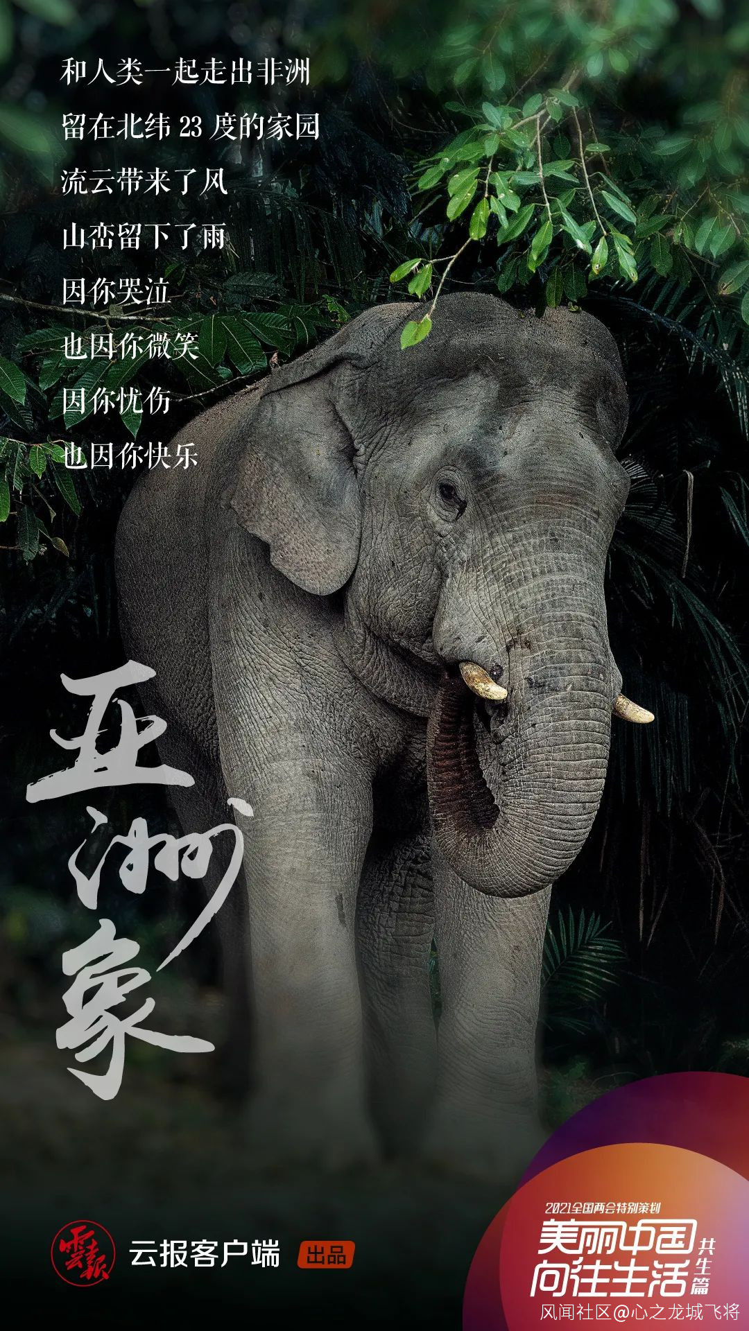 亞洲象是亞洲現存的最大陸生動物,屬於國家一級保護動物。亞洲象生活在熱帶森林、叢林或草原地帶。亞洲象喜羣居生活,每羣數頭或數十頭不等,由一頭成年雌象作為羣體的首領帶着活動,沒有固定的住所,活動範圍很廣。中國的野生象僅分佈於雲南省南部與緬甸、老撾相鄰的邊境地區,數量十分稀少。