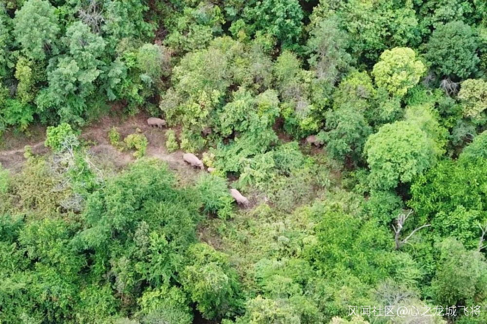一路北遷的野生亞洲象羣