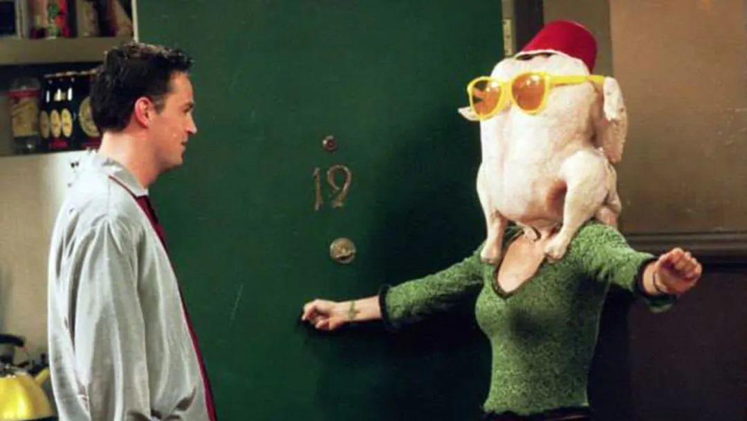 Monica為了向Chandler道歉,將什麼套在自己頭上?