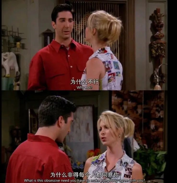 當Ross和Phoebe熱烈討論進化論時,Phoebe的一句:“為什麼我不可以不相信進化論?我就是不相信。” 對啊,這個世界何其大,要接受和擁抱大千世界的不同可能性啊!