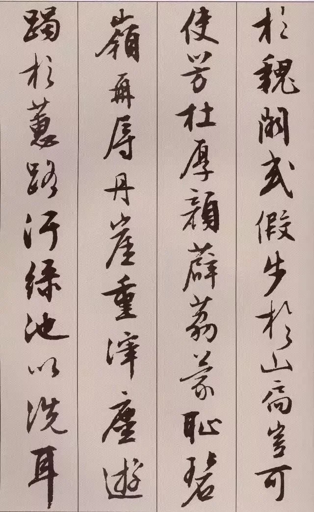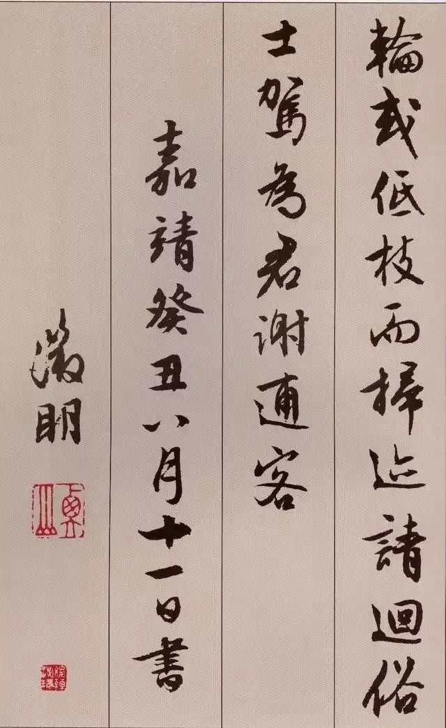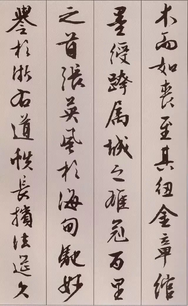 文徵明的行書大致可分兩大類風格:一是以王羲之《聖教序》筆意為主所寫的行書小品;一是以黃山谷筆意書寫的大行楷。他在形成這兩大類風格之前,同樣經歷過博採階段,他不僅搜遍儘可能見到的王羲之法帖,還深入臨習過顏真卿的《爭座位》《祭侄文稿》《劉中使帖》《瀛州帖》,蘇東坡《前赤壁賦》(併為此以蘇體補書所缺三十六字)、黃山谷《經伏波神祠詩》《竹枝詞》以及米芾、趙孟頫等行書大家的墨跡。有時他也能像祝允明那樣,以蘇、黃、米等人的筆意書寫自己的詩文。當然他並未停留在這個階段,而是入後知出,對古法進行了揚棄,最後求得適合己性的自家筆法。