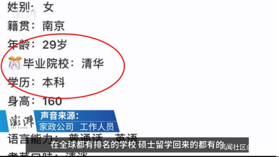 有家政公司在平台上發佈了一條信息:清華大學畢業女生,求職保姆阿姨管家。