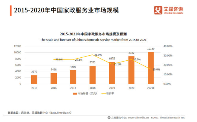 根據統計,中國家政行業在2015年時,市場規模大約是2776億元,去年已經達到8782億元。