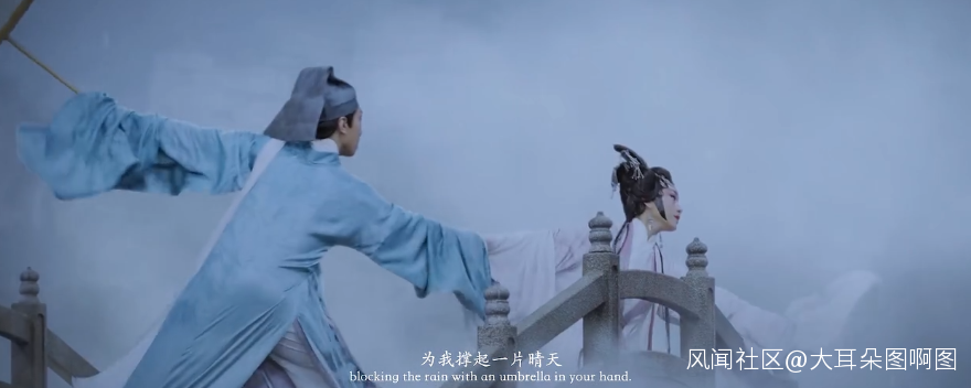 例如斷橋借傘,就是煙雨朦朧水朦朧: