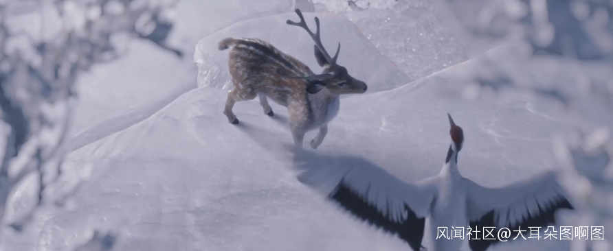 相比於舞台上只能用服飾暗示二人身份的侷限性,電影版把一鹿一鶴做得栩栩如生。