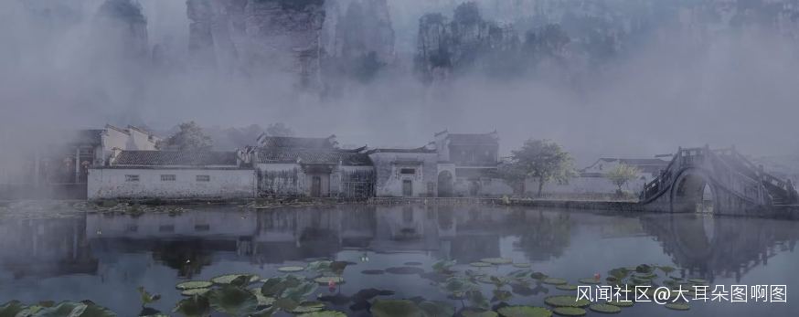 既然台詞都講究“留白”,佈景自然也是帶着一股濃濃的“水墨國風”。