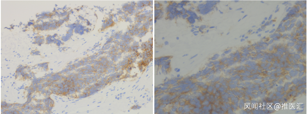 免疫組織化學的檢測結果符合小細胞癌的特徵。