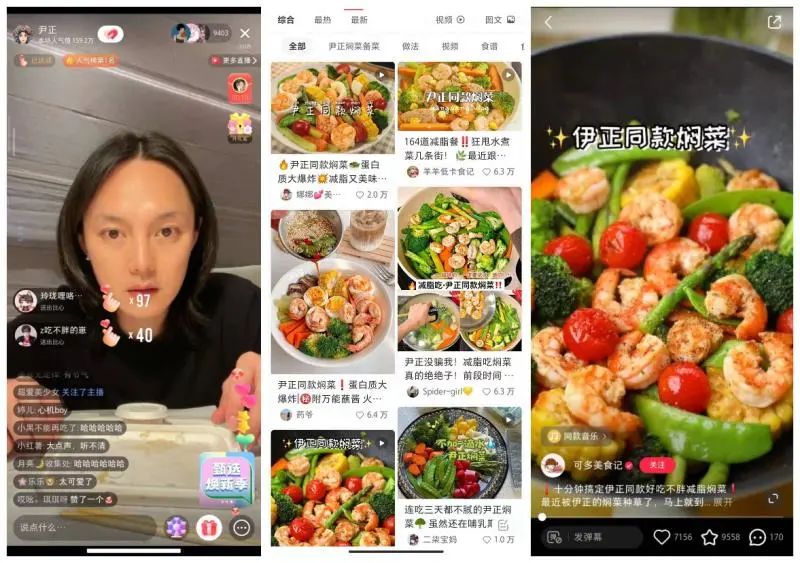 小紅書的美食內容也在近一年被頻繁看見。一個例子是,演員尹正入駐後,憑藉減肥食譜“尹正燜菜”多次出圈,在微博、豆瓣等網絡社區引發二次討論和擴散。4月8日,“尹正燜菜”登上微博熱搜TOP10。