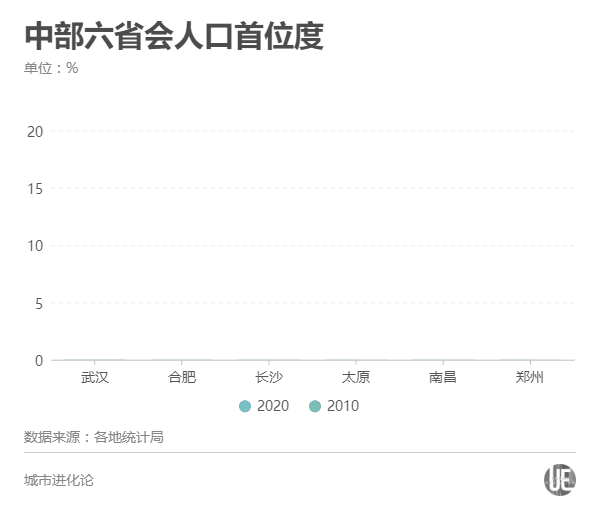 一方面,鄭州的“人口首位度”已從2010年的9.17%提升至2020年的12.68%,但同時,這一數值在中部六個省會中排名最末,武漢的“人口首位度”達到21.34%。