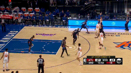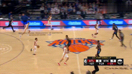 於是,G2開場,諾埃爾重拾了侵略性,他先是做了延誤,然後迅速回追切斷楊的傳球。尼克斯的鋒線會支援諾埃爾的防守,他們用更可能限制持球人的防守方式,決心讓楊的得意終結在這一場——紐約人民要解氣,尼克斯要贏球。