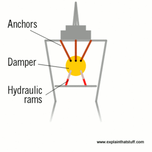 每當強風侵襲,樓開始有晃動傾向,液壓系統便推動擺錘朝反方向晃動,以抵消部分對樓的振動。