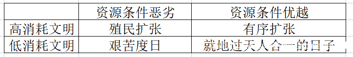 這兩點我們可以作為一種觀測文明演化的模型基礎,最有特徵性的就是對農耕文明與遊牧文明的研究。農耕文明能在極為狹小的土地上對在地化資源做最大限度的利用,這點,只要你去一趟中國的農村,看到那高速公路邊上滿種的蔬菜就能瞬間明白;而遊牧文明則因為其高消耗的特點(依賴於畜牧)而無法長期停留在一片固定的土地上,因此遷徙就成了一種剛需。