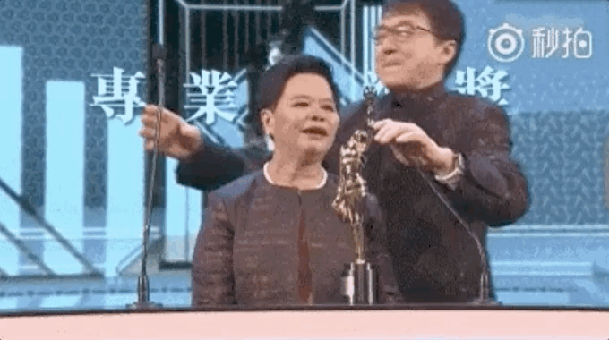 當晚,成龍為了給她頒獎,連夜飛回香港。