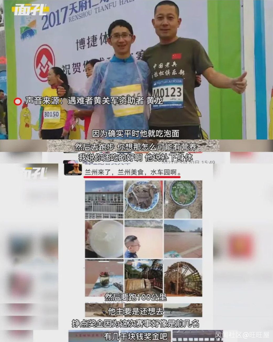 後來他靠着各種跑步賽事的獎金維持生計,生活也並沒有很大的起色:日常三餐吃泡麪,鞋子、衣服捨不得買新的,一直都穿主辦方發的。這次參加越野賽之前,他好不容易犒賞了自己一餐羊肉,一雙新鞋。卻沒想到,意外又選中了他。“他聽不到,也喊不出,就算想呼救都沒辦法。”黃關軍曾答應父親,滿34歲就不跑了,做一名體育老師。可惜,他卻永遠留在了33歲的最後一個月。
