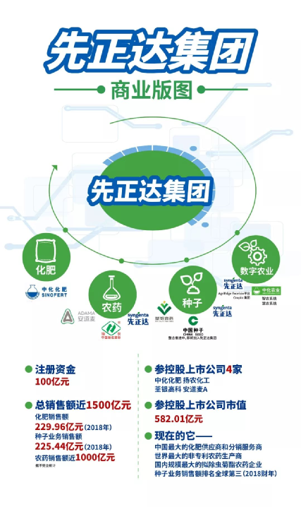 2019年,新成立的先正達集團中國成為中國最大的農業投入品供應商,在中國擁有員工近14000名,銷售額達56億美元。