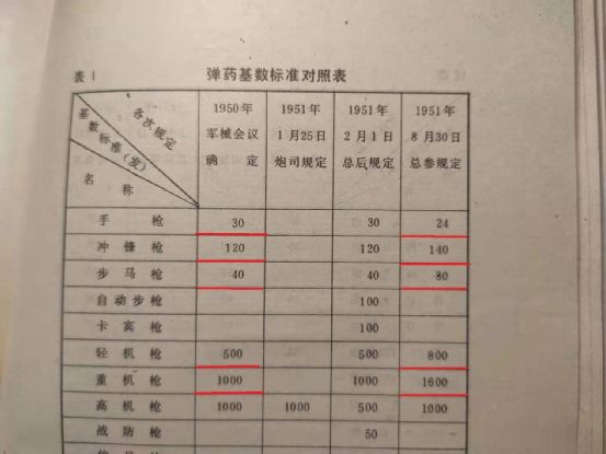 而在1951年8月30日,我軍總參的新規定裏,上述武器的一個彈藥基數的標準數量就發生了變化。