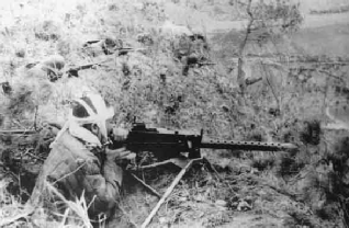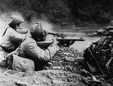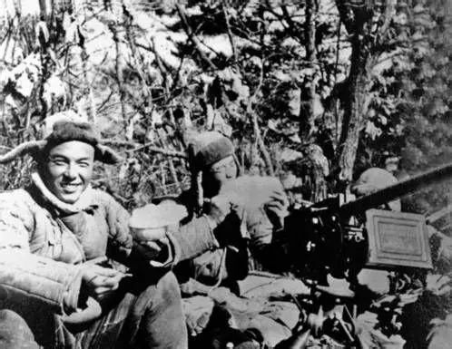 ▲使用繳獲的美製重機槍的志願軍戰士