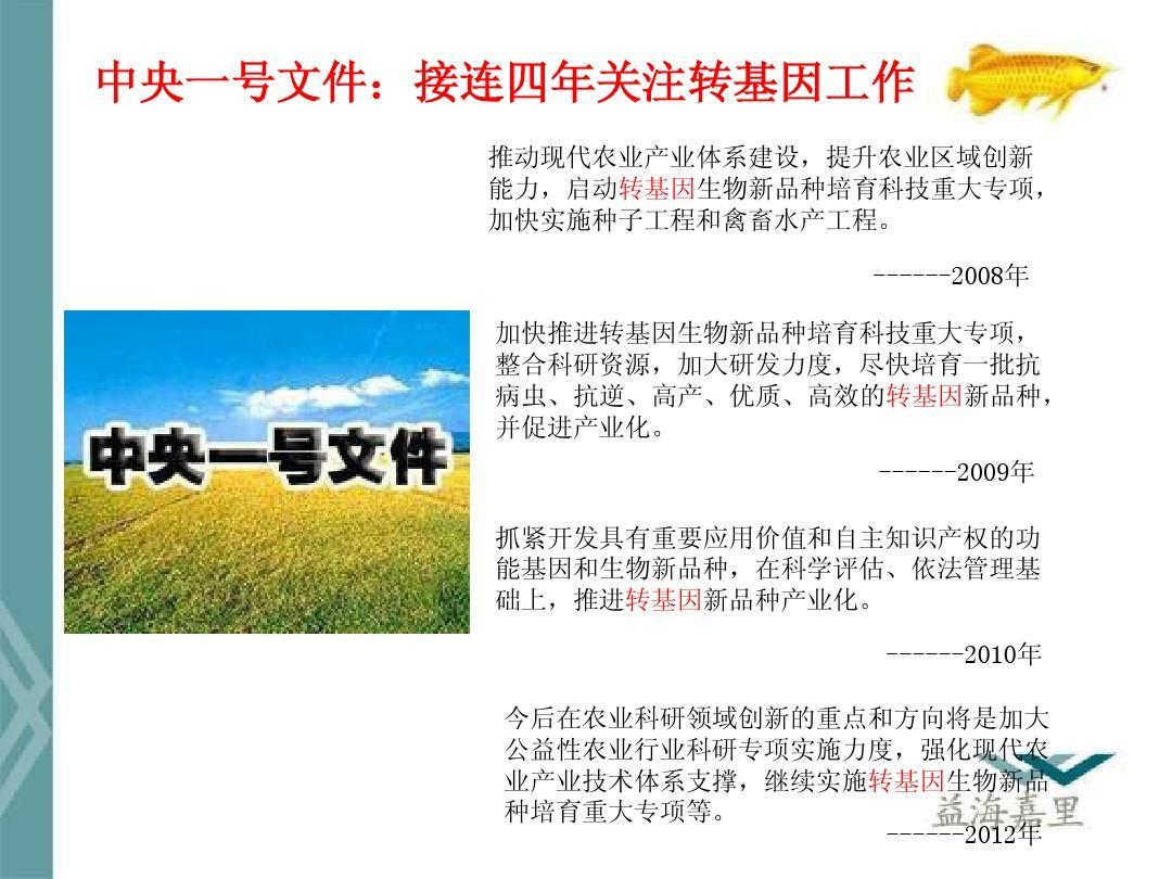 **四、加強主體培育,發揮企業主導作用。**落實企業在農業轉基因生物推廣應用中的主體地位,支持企業組建創新聯合體,促進創新資源互融互促。引導院所高校的優質農業轉基因研發成果按照市場機制向企業集聚。推進轉基因研發科企合作,鼓勵企業、企業與院所高校聯合申報生產應用安全證書,讓企業真正成為研發、應用和貿易的主體力量。