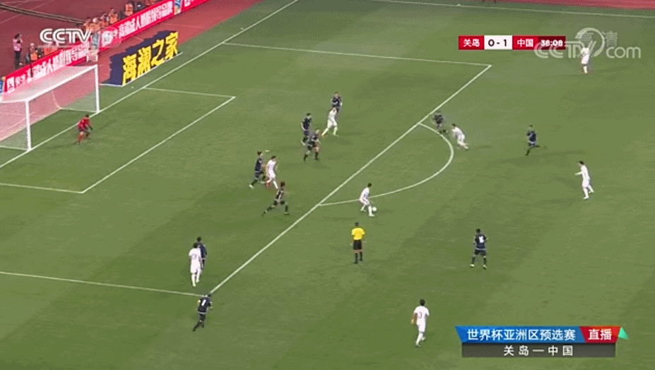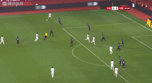 整個上半場,中國隊的控球率達到89.1%,主要進攻手段為右路套上傳中,左路內切傳中,在對手的密集防守下,效果並不理想。兩粒進球,反而是靠着中路的傳切配合。