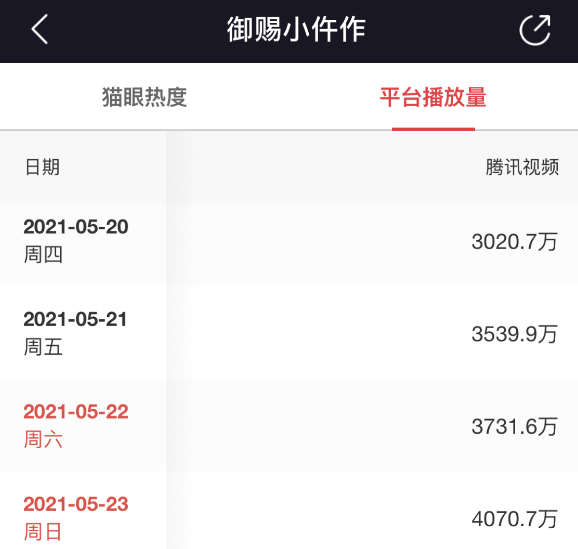 5月14日後,該劇日播放量飆升至2500-4000萬,最高記錄是超前點播大結局釋出後第二天(5月23日),達到4070萬,昨晚(5月29日)第二波收官也達到了3915萬,可謂是後期發力的一匹“黑馬”。