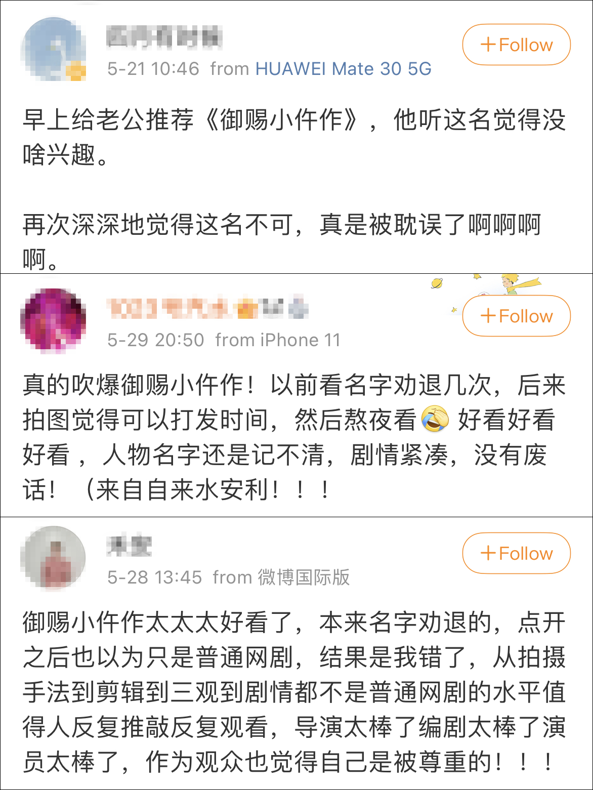 面對分配不均、浪費鉅額投資的網劇市場,觀眾發現一部服化道窮酸但劇情還挺燃的網劇時,自然有了想瘋狂安利的“逆反”和“關愛”心理,本質上 ,這也是當下影視市場一切“唯IP和流量論”的“心酸”現狀。