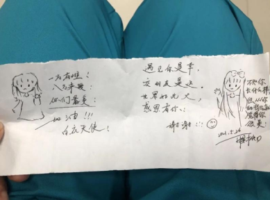 一位採樣護士,手裏收到市民塞進來的紙條,寫着“不知你長什麼樣,但從你的背後就覺得你很美!”落款是“小櫻桃”。