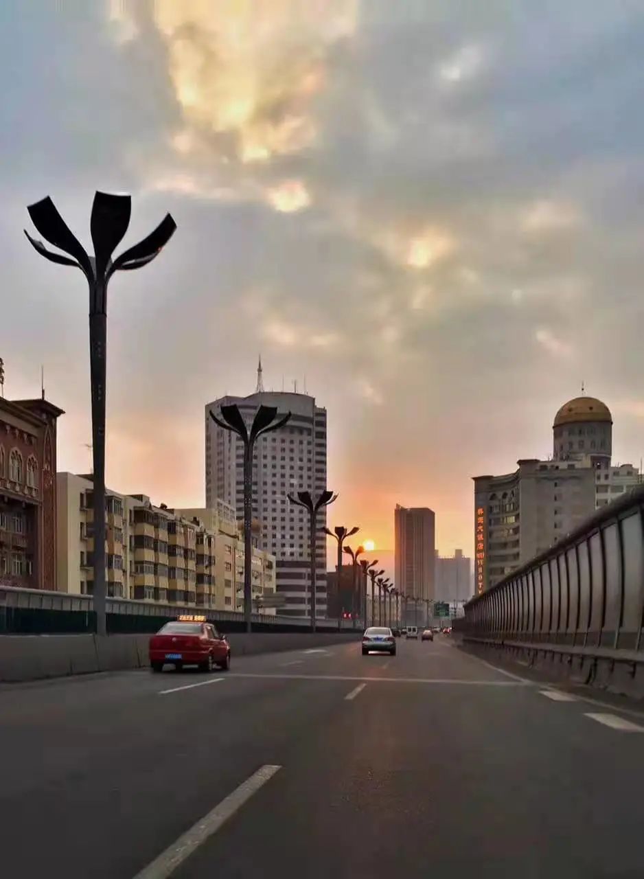 下班已是傍晚,步行回家,走在城市街道上,路過熟悉的水果店,細心挑選着心儀的果子,抬頭準備付錢時,遠處的夕陽耀眼奪目。