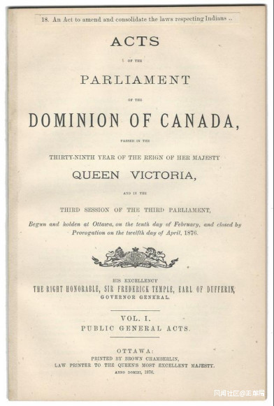 除了對孩子下手,加拿大還在1876年頒佈了印第安土著居民法案。