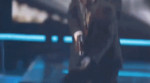 一同上台領獎時,看到穿着裙子和高跟鞋的楊紫有些不便,張藝興便伸出了手。