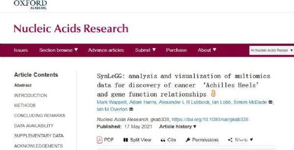 Mark Wappett, Adam Harris, Alexander L R Lubbock, et al. SynLeGG: analysis and visualization of multiomics data for discovery of cancer ‘Achilles Heels’ and gene function relationships, Nucleic Acids Research (2021). DOI: 10.1093/nar/gkab338