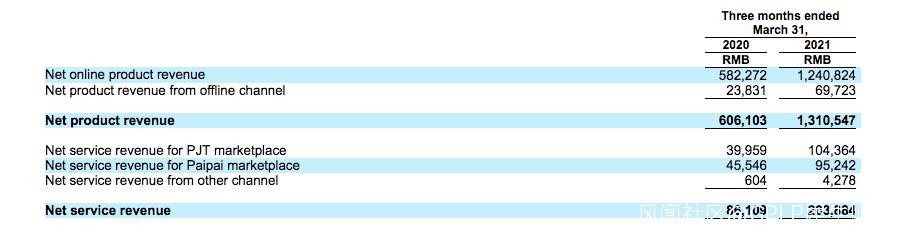 根據招股書公佈的2021年一季度的拍拍平台服務收入為0.95億,和平台佣金比率在4%左右,可以算出2021年一季度拍拍第三方商家的GMV數據大概在24億左右,再加上自營收入14億的大約12%也通過拍拍銷售,因此2021年一季度拍拍(B2C)的總體銷售額大約是25.7億。而萬物新生2021年第一季度總體GMV為62億,由此可以算出:2021年一季度,拍拍業務的2C銷售GMV在集團整體GMV中的佔比約41%。