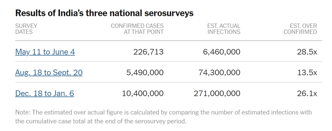 印度三次血清調查結果,圖源:《紐約時報》,下同
