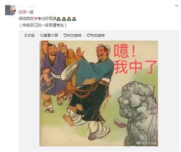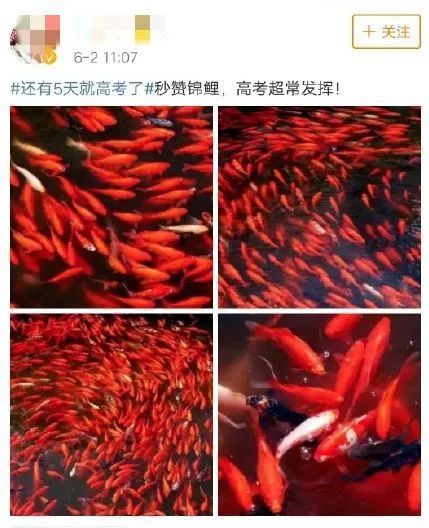 每年這個時候,很多學生會自發在社交媒體上轉發“錦鯉”,不管之前的微博畫風是怎樣的,反正這幾天全部祈福就完事兒了。