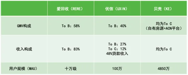另一方面,相比愛回收和優信,貝殼招股書顯示GMV和收入均來自於To C業務,用户規模接近5000萬MAU,愛回收+拍拍不到百萬的MAU與貝殼在規模上不是一個數量級。