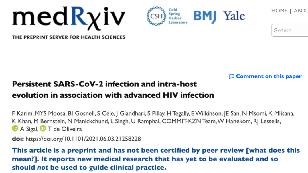 這項研究介紹了一例晚期HIV和抗逆轉錄病毒治療失敗的患者持續感染SARS-CoV-2並加速宿主內演變的病例。儘管臨牀病情較短,但SARS-CoV-2的PCR陽性持續了216天。
