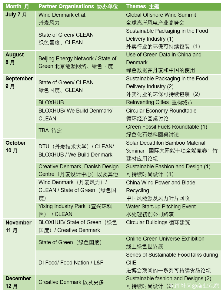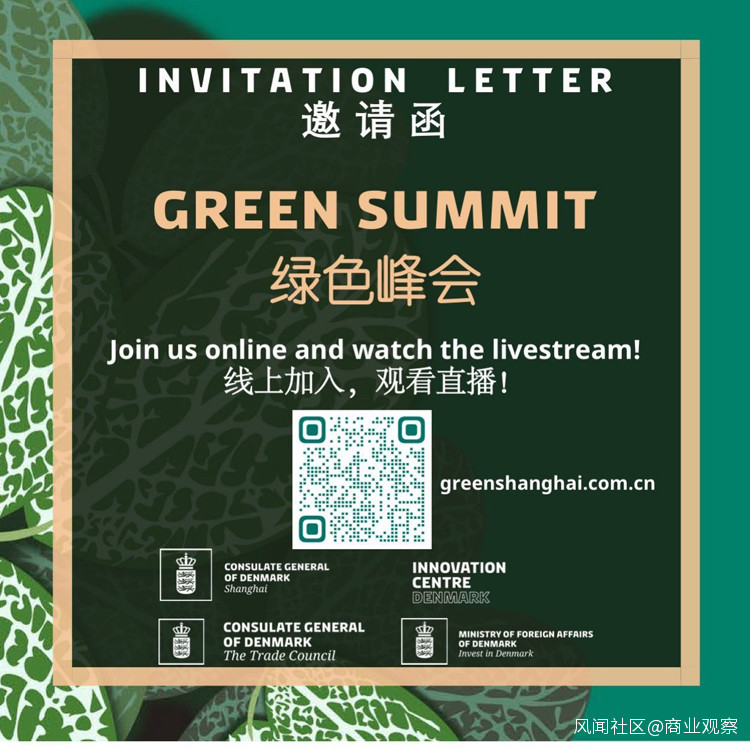 綠色峯會由丹麥王國駐上海總領事館、丹麥投資促進局、**商務部、丹麥科技創業中心(上海)**支持舉辦,並將持續推出綠色峯會(Green Summit)系列活動,活動排期如下列表,敬請關注!